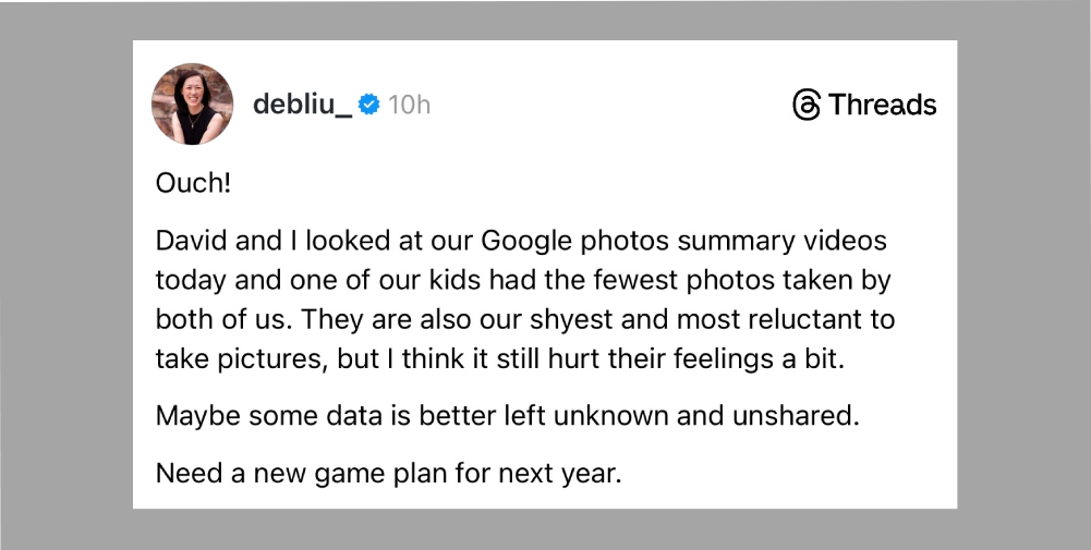 For products with high risk of surfacing unwelcome personal data, pivoting to aggregate information provides a safer alternative. Google, Netflix and TikTok year-end recaps lean toward showing users what was popular across the platform rather than potentially embarrassing personal statistics.