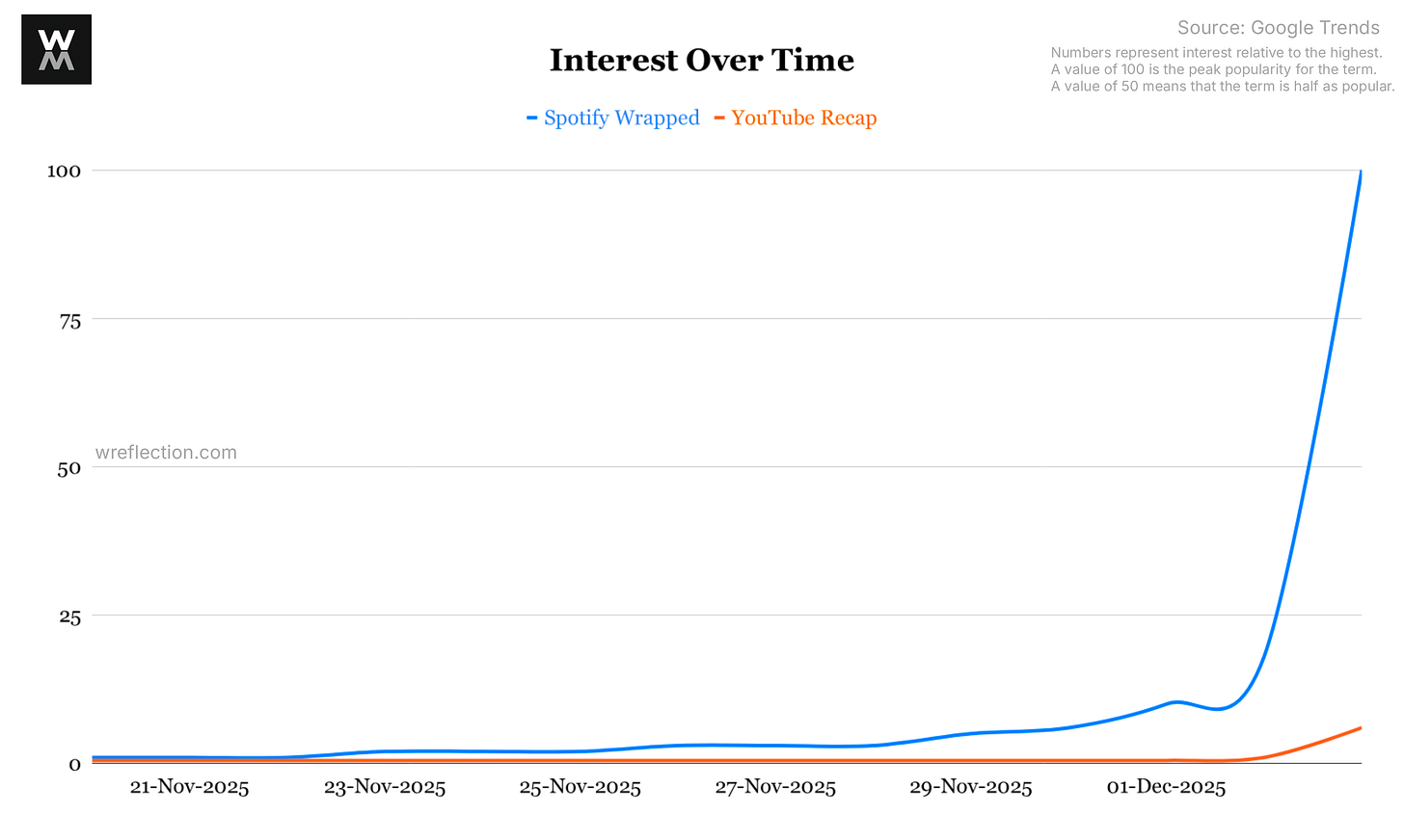But why does Spotify’s version generate significant anticipation and engagement, while the others struggle to gain traction? For comparison, YouTube has nearly 4x the number of users (YouTube 2.7B2, Spotify 700M3) yet Spotify Wrapped generated ~17x more interest.