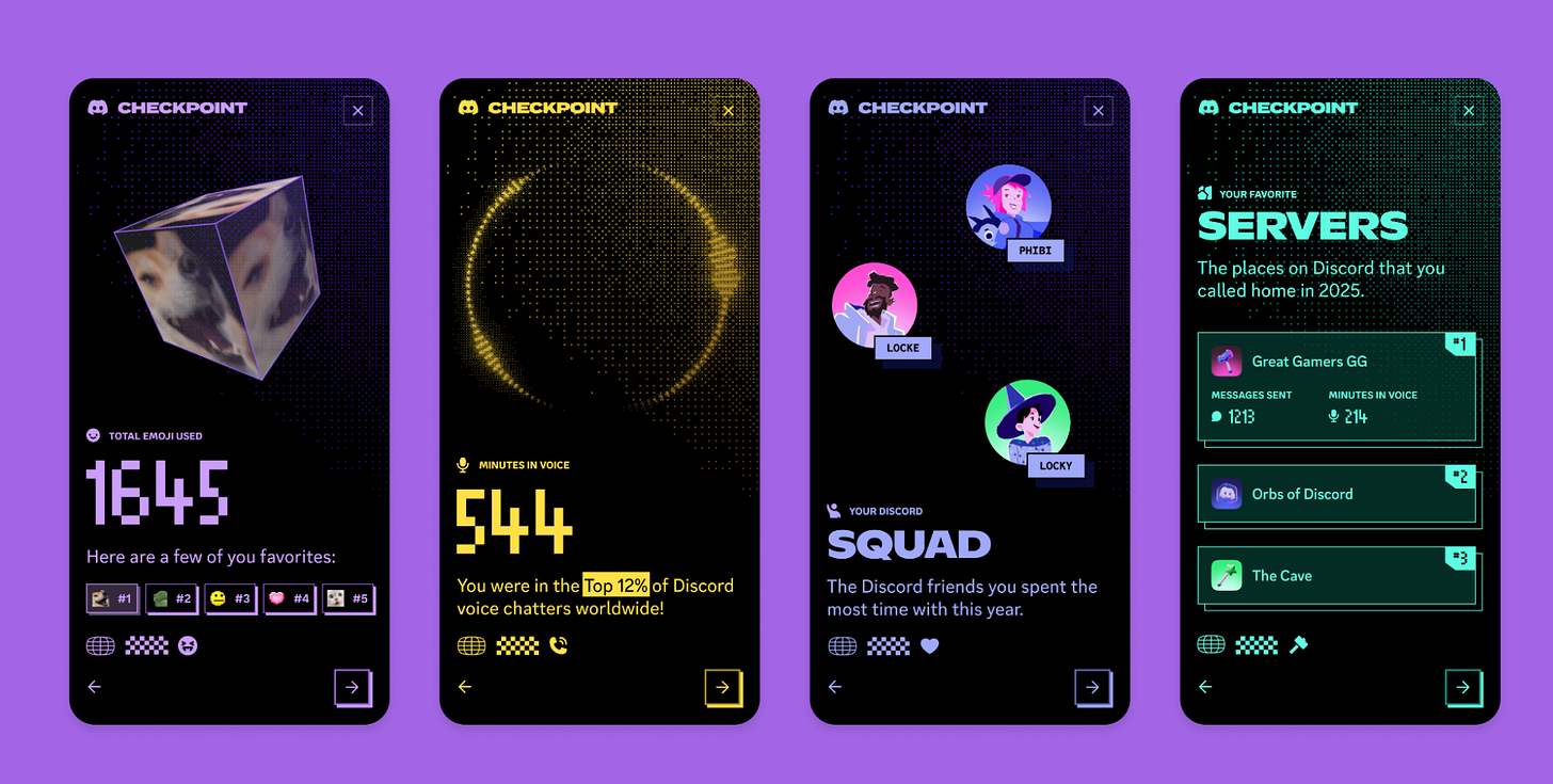 Naturally, the copycats follow. YouTube Recap, Strava Year in Sport, Duolingo Year in Review, Granola Crunched, Grammarly Writing Wrapped, Apple Music, Amazon Music, LinkedIn, Uber, Tiktok, Google Search, Twitch, Discord, Reddit, the list goes on.